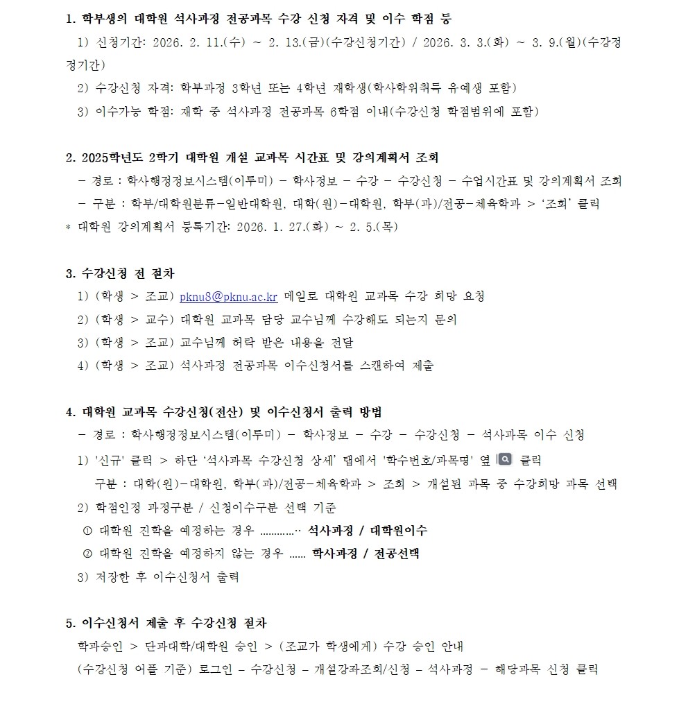 2026학년도 1학기 학부생의 대학원 수강신청 안내